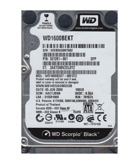WD1600BEKX-00B7WT0 Western Digital Laptop Hard Drive